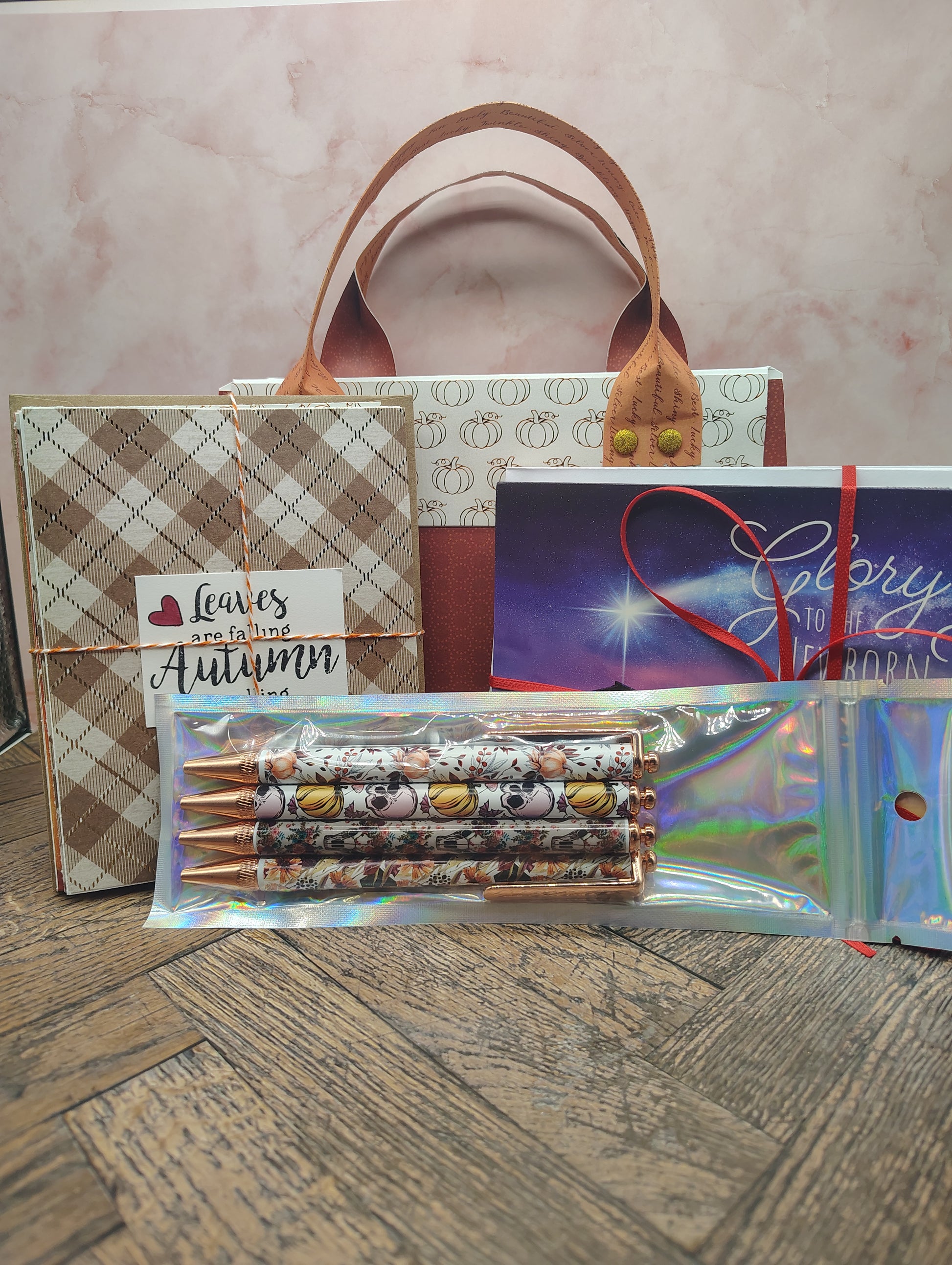 Celebrate the season with this handcrafted paper purse gift set, designed with cozy fall charm and thoughtful details. The purse itself is beautifully made with pumpkin and plaid accents, making it both a keepsake and a unique gift container. Inside, you’ll find a mix of practical and inspiring goodies that bring autumn warmth to everyday life.